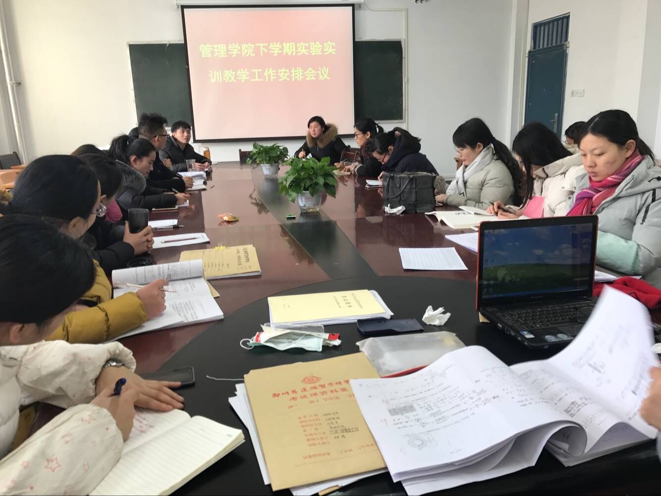 为加强yL23411永利集团官网实验实训教学管理,进一步规范实验实训教学过程材料,结合近期公司设备处和经管中心相关会议要求,2018年1月29日下午,yL23411永利集团官网组织召开下学期实验实训教学工作安排会议。此次会议由副经理唐云老师牵头,实验中心主任董飞老师、各教研室主任、下学期有实验实训课教学任务的老师参加了会议。