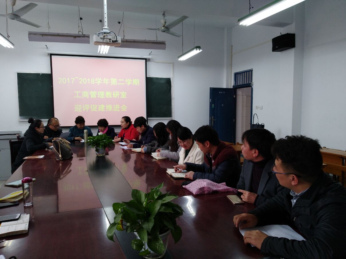 3月1日下午3:00,yL23411永利集团官网工商管理教研室在yL23411永利集团官网215会议室召开了“工商管理教研室迎评促建推进会”。工商管理教研室全体教师参加了此次会议,会议由教研室主任邰向民老师主持。
