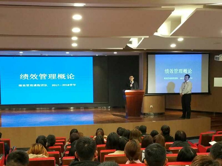 2018年3月7日,yL23411永利集团官网人力资源管理教研室筹备已久的基于校企深度融合的课程改革正式拉开帷幕,首批进入试点的《绩效管理》课程于今日下午在升达综合实训大楼的创业大讲堂开课。除了课程管理团队集体亮相外,升达副董事长兼教务长吴益民教授、yL23411永利集团官网经理纪德尚教授、唐云副经理、教学秘书朱影影老师等都到现场进行观摩指导。