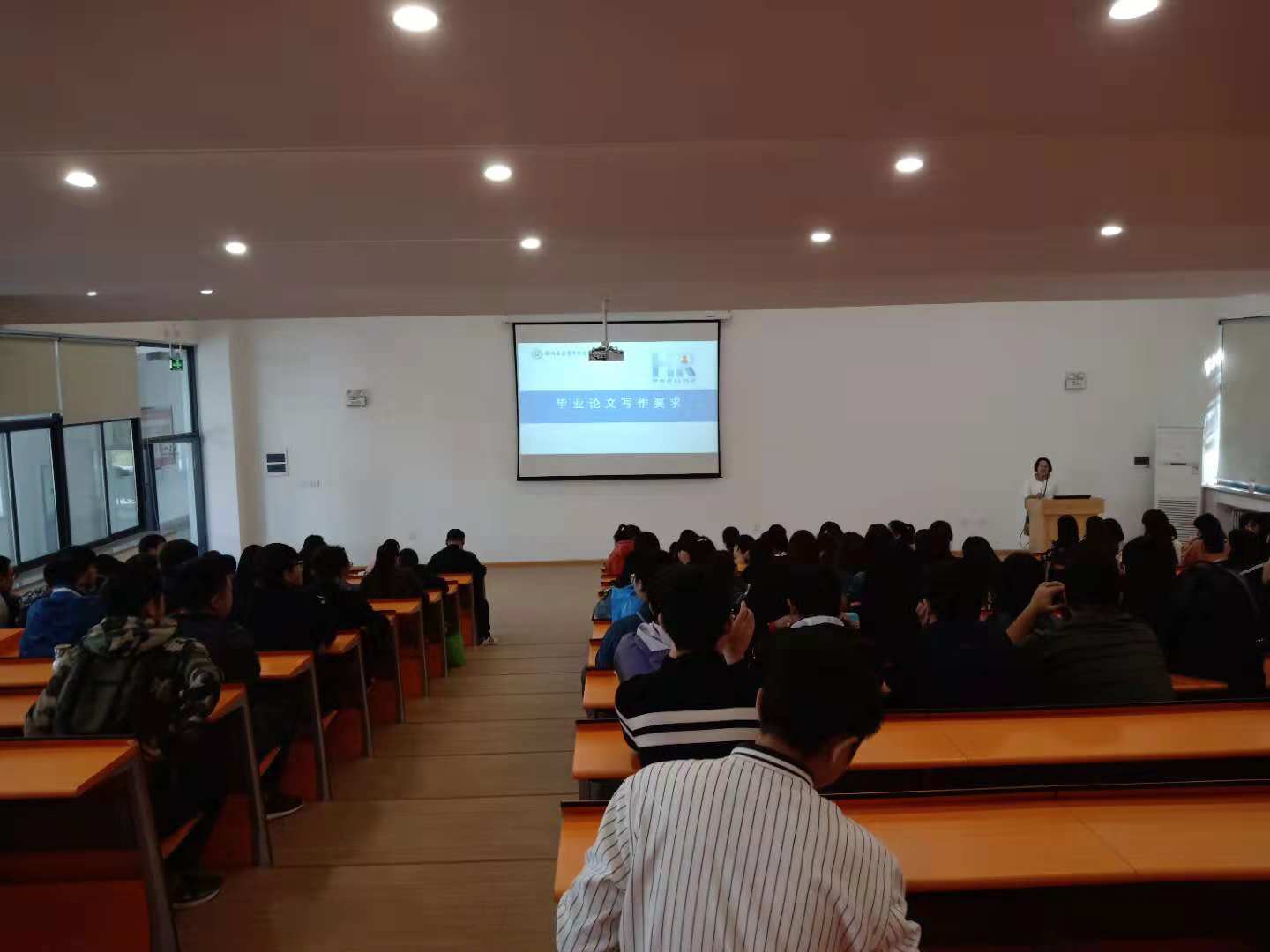 大会由王军旗老师主持。会议开始,由靳豆豆老师介绍了有关论文写作的相关要求。她从“毕业论文”的内涵出发,带领同学们理解“毕业论文”的本质是把知识转化为能力的实际训练,其目的在于用综合所学知识解决实际问题。而解决实际问题的关键步骤是在确定好选题的基础上完成阅读大量文献和相关准备理论并完成开题报告,进而根据实际调查提出问题、分析问题和解决问题。靳老师要求同学们的论文须有数据支撑、符合论文写作规范、要能够解决实际问题并按进度完成。