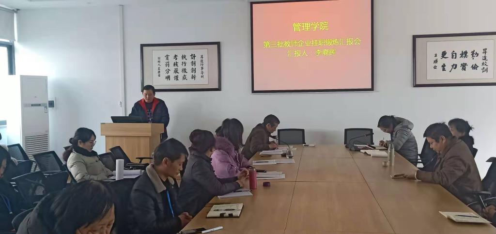 汇报会上,yL23411永利集团官网第三批企业挂职教师李裔辉、梅华、刘欣、王玉杰先后围绕挂职工作内容及个人收获体会,汇报挂职过程中的具体收获及挂职工作结束后的工作创新情况。李裔辉老师和梅华老师在河南省环旅会务服务有限公司挂职锻炼,为期5个月,分别挂职于销售总结助理和旅行基调管理岗位,通过赴旅游企业挂职锻炼,从旅游产品设计、旅游企业管理流程、导游队伍建设等方面知识与能力得到了提升。刘欣老师在郑州名泰医疗器械有限公司挂职锻炼的岗位为人力资源专员,跟随企业人员一起工作,熟悉工作日程与安排、工作流程,以及工作中所需要的知识与技能。将日常工作与实践教学紧密相连,详细记录工作中的流程与问题,并进行总结与归纳,面向市场需求,完成人才培养方案和教学目标的修订。王玉杰老师在河南高新众创空间挂职岗位为项目部副主管,通过挂职锻炼,提升了项目运营管理业务能力,丰富了行业经验,拓宽了职业视野,为课堂教学改革和校企合作工作开展,提供了实战经验积累。