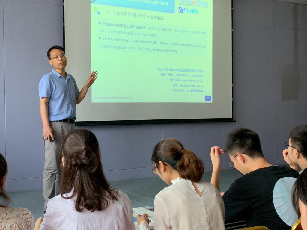 在早会结束后,由刘书生先生为同学们介绍了e-HR即电子化人力资源管理模式,并且讲解了“益昇eHR”软件的14个功能模块和各个模块的使用方法,介绍了每个模块对应的意义。同学们也是第一次接触到eHR的概念,兴趣非常浓厚,表现出了极高的学习热情。