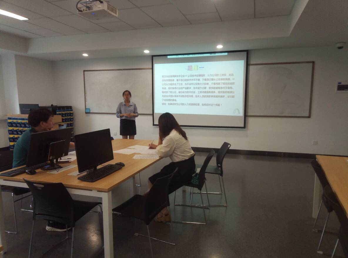 本次决赛共有17位同学,决赛阶段由选手们通过抽签决定出场顺序,先进行了2分钟的英语演讲,再进行分模块项目展示。在无领导小组讨论中,选手们面对题目深思熟虑,共同解决问题,展示出人力资源管理专业员工的风采;案例分析比赛侧重考察了同学们的语言表达能力,专业知识基础以及分析问题能力;职场实战通过工作场景模拟,展现出作为企业HR所需具备的专业素质和良好的心理素质,以及能够随机应变的能力;实务设计历时三个小时,三位参赛选手都拿出了优秀的方案并进行了展示。