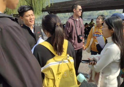 16日早上7:50,五个班级在行政楼门口集合,同学们准备充分、按时到达在老师和辅导员的组织下,8:00准时出发。到达景区之后,同学们先进行合影拍照之后,各班级开始分小组进行实习调研。