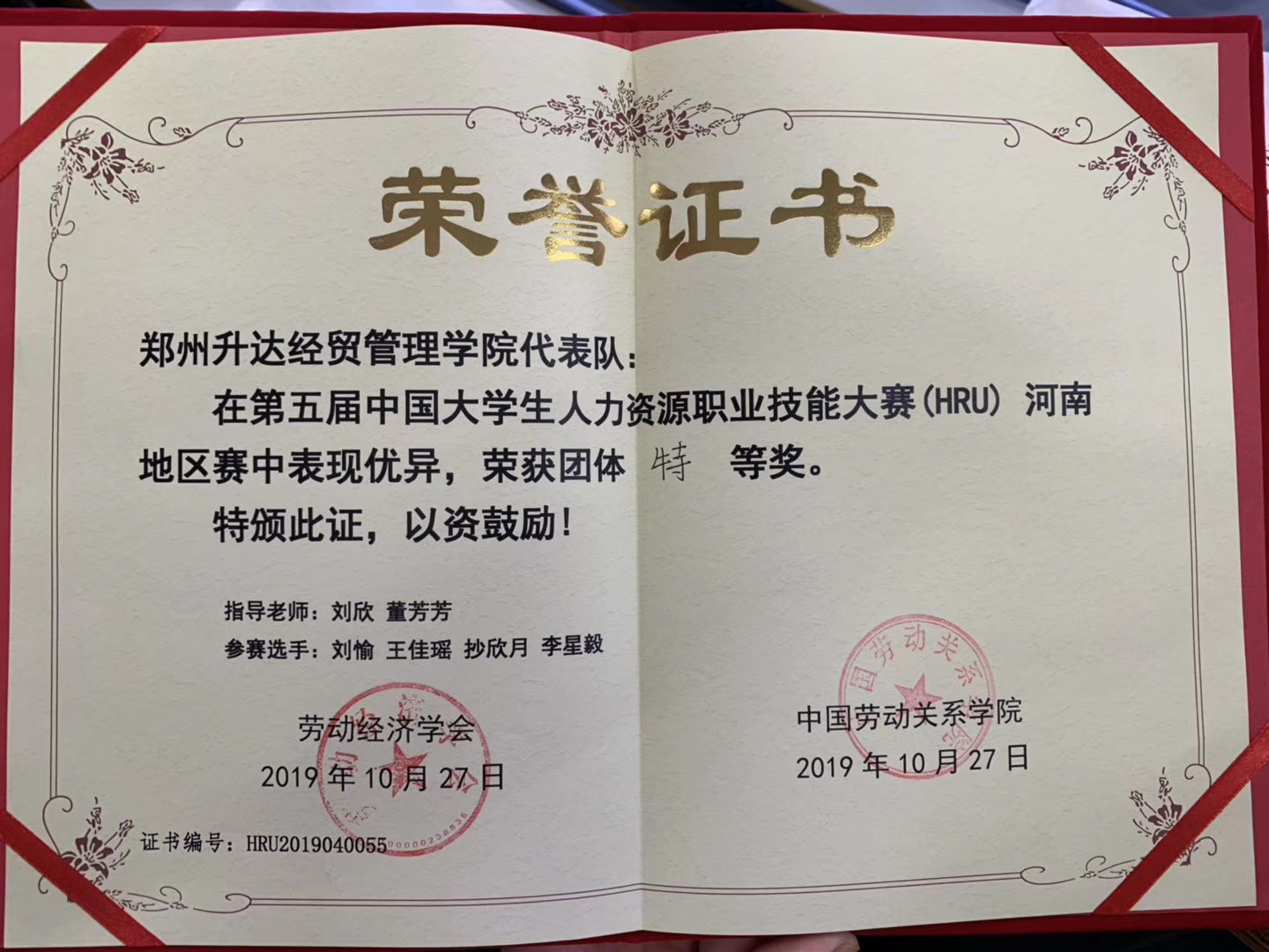 第五届中国老员工人力资源职业技能大赛暨海峡两岸老员工人力资源职业技能大赛(河南赛区)于2019年10月25日至27日在河南科技公司举行。yL23411永利集团官网人力资源管理专业四名员工代表公司参加了本次比赛。