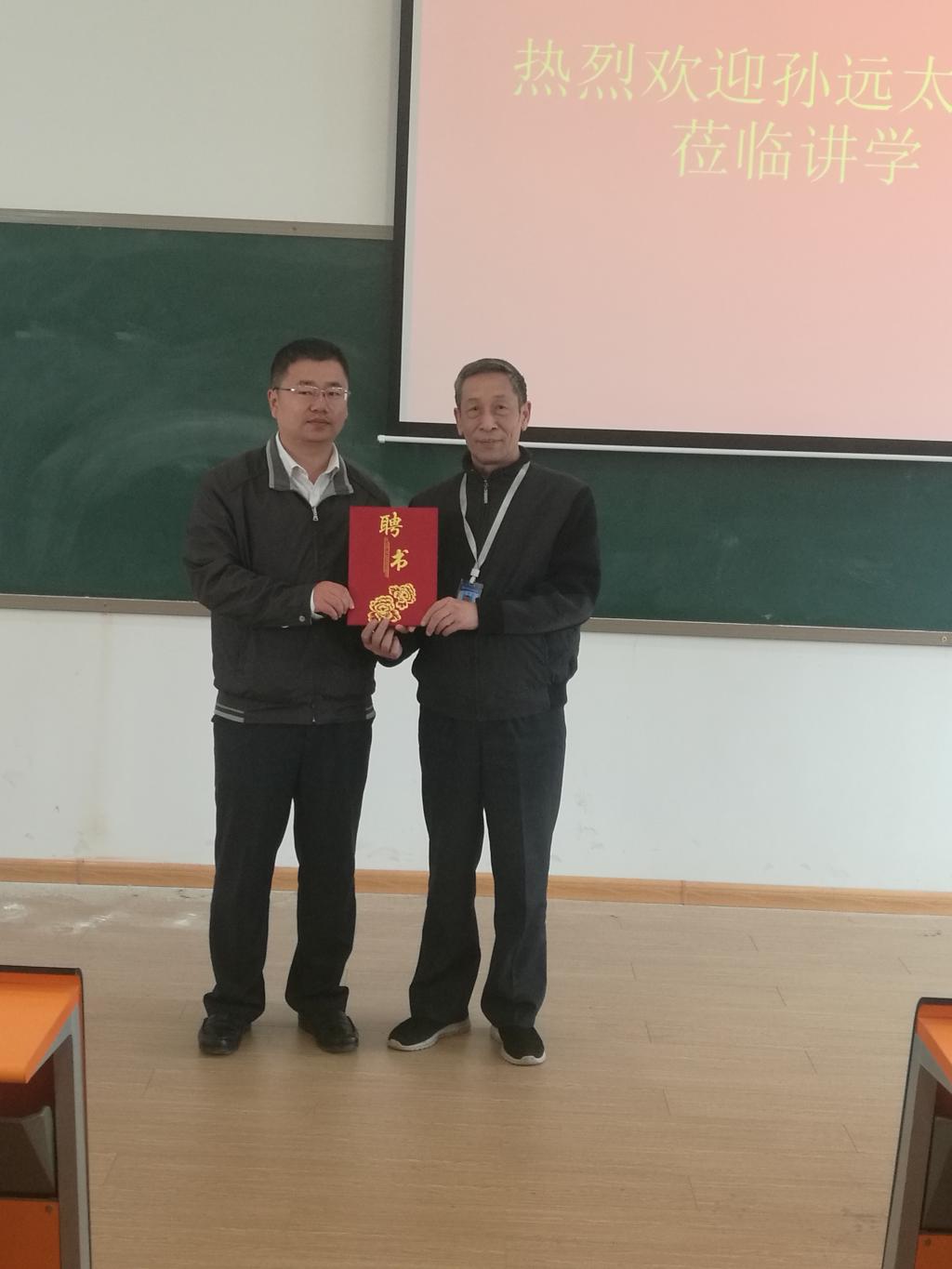 报告会开始前,纪德尚经理向孙远太教授颁发了聘任证书,敦聘孙教授为公司客座教授。