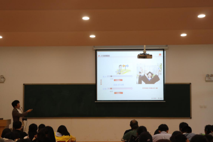 李静霞女士的人生,有着从“士兵”到“将军”的传奇经历。在过去的人生历程中,她经历了出战承德、决胜淄博、挂帅杭州、统领全国、入住中原五步曲。每一步都充满了惊心动魄的商战气息、蕴含着自强不息的奋斗精神、充盈着爱与奉献的微笑。她结合自己的传奇经历,与在座师生分享了三个专题:人活着的价值和意义、人生规划的必要性、人生的目标与分解等。