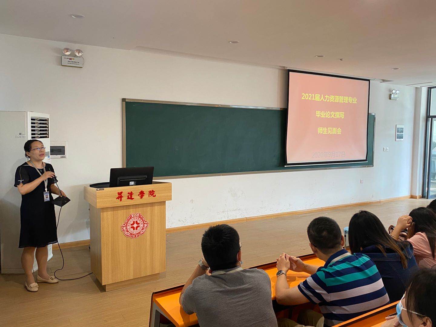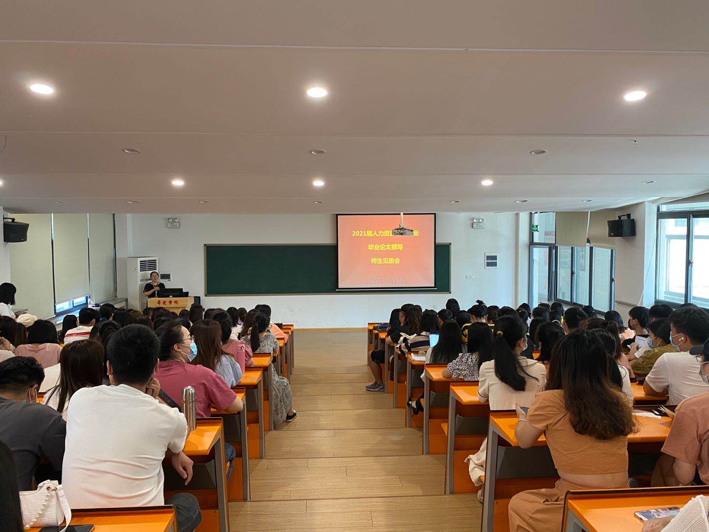 2020年9月17日下午,人力资源管理教研室在107阶梯教室召开了2021届毕业论文指导工作首次师生见面会。人力资源管理专业的11位论文指导教师和2021届的125名毕业生参加了会议。