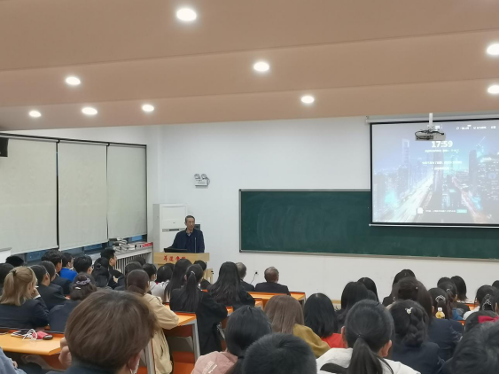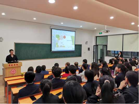 接着,工商管理教研室主任董芳芳老师从专业、目标、成长三个方面对工商管理专业进行了详细介绍,使大家了解了工商管理专业的发展情况及培养目标、教学方式、专业竞赛等内容,同时分享了往届毕业生自制的视频作品和励志短片,让大家对专业有个初步的印象和了解,并提醒大家在实现目标的过程中,要结合自身情况确定目标,更重要的是付诸行动。