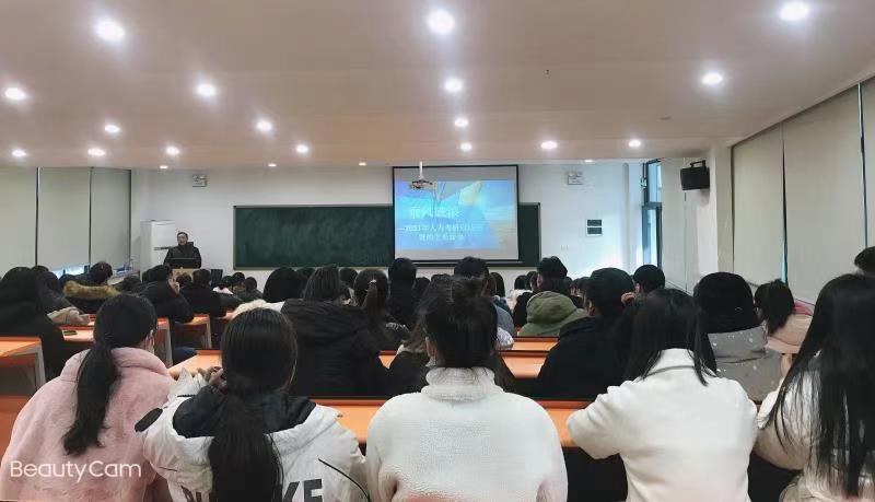 人力资源管理教研室主任靳豆豆老师就考研过程中的三重境界“昨夜西风凋碧树,独上高楼,望断天涯路”、“衣带渐宽终不悔、为伊消得人憔悴”、“众里寻他千百度、蓦然回首,那人却在灯火阑珊处”为同学们做了具体讲解,并鼓励同学们乘风破浪、创造辉煌。