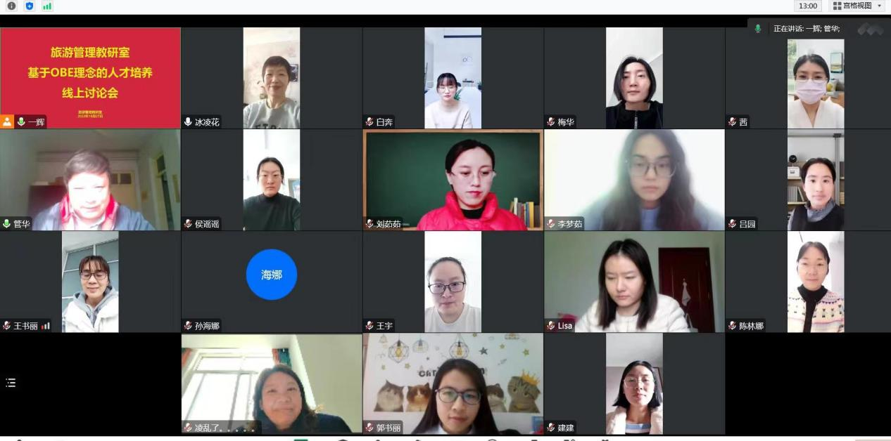 为加快旅游管理和酒店管理专业教学质量的快速提升,进一步实现人才培养的高质量发展,2022年10月27日旅游管理教研室专业教师在李裔辉主任的带领下,通过腾讯会议的形式,集中学习了有关“基于OBE理念的人才培养改革”的相关培训视频。