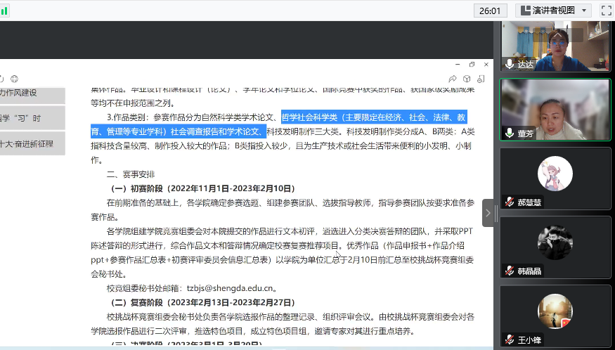 为鼓励广老员工积极参加学科竞赛,增强科技创新意识,工商管理教研室在11月21日晚7点通过腾讯会议举办了学科竞赛动员会。会议由工商管理教研室全体教师及大二大三员工参加。