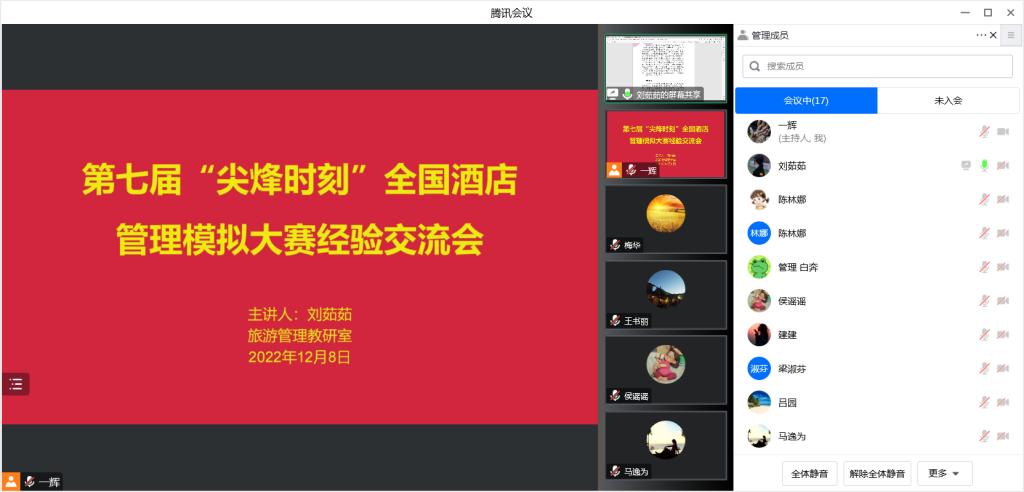 刘茹茹老师率领的竞赛队伍是在新冠疫情肆虐、网络授课的背景下参赛并取得了优秀的成绩。此次学科竞赛分享会,不仅为专业教师和同学提供了新的经验,更是对老师与员工取得成绩的肯定,同时也明确了旅游和酒店管理学科竞赛新方向。