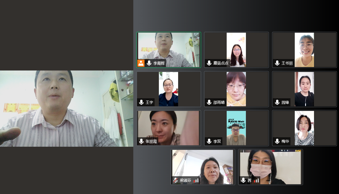 教研室老师们围绕李主任提出的三个方面规范化教学展开了讨论,梁淑芬老师从中观层面介绍了人才培养方案制定及执行情况,并对现行专业教学规范使用情况进行了评价;王建平老师提出教学管理与员工管理工作是双向互动的,更能够体现教学规范化、质量精细化、队伍专业化的教学工作目标,因此不仅要加强教学管理的规范化,更要加强员工管理的规范化;梅华老师分享了在课程中该如何合理地设置思政环节,对课堂教学的设计、教学目标的设定及考核评价的方式进行了分析与讨论。教研室的其他老师们也积极地参与讨论,线上的讨论变得十分激烈。