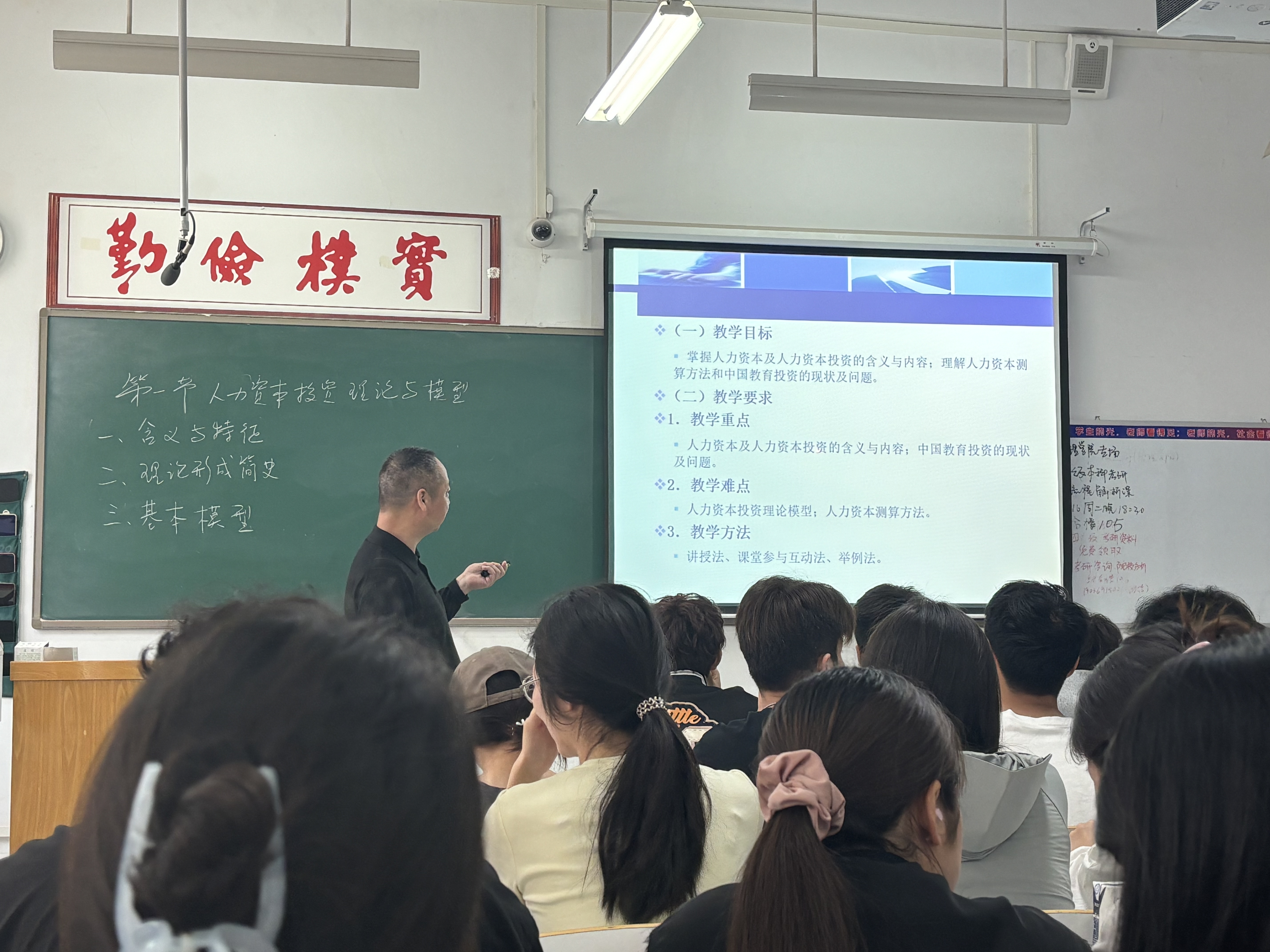 老师们首先走进了李向民老师的《劳动经济学》课堂。李老师以深入浅出的方式,向同学们讲授了人力资本投资理论与模型。他结合生动的案例和前沿的研究数据,分析了人力资本投资对个人及社会发展的重要性,并详细阐述了人力资本投资的各种模型和策略。李老师丰富的专业知识和独到的见解,让在场的每一位教师都受益匪浅。在观摩过程中,教师们不仅认真聆听了李老师的授课内容,还仔细观察了课堂互动、员工反馈以及教学方法的运用。大家纷纷表示,李老师的教学风格既严谨又生动,能够很好地激发员工的学习兴趣,提高课堂效果。同时,李老师在课程中融入的实践教学环节,也为员工提供了宝贵的实践机会,有助于他们更好地理解和掌握理论知识。