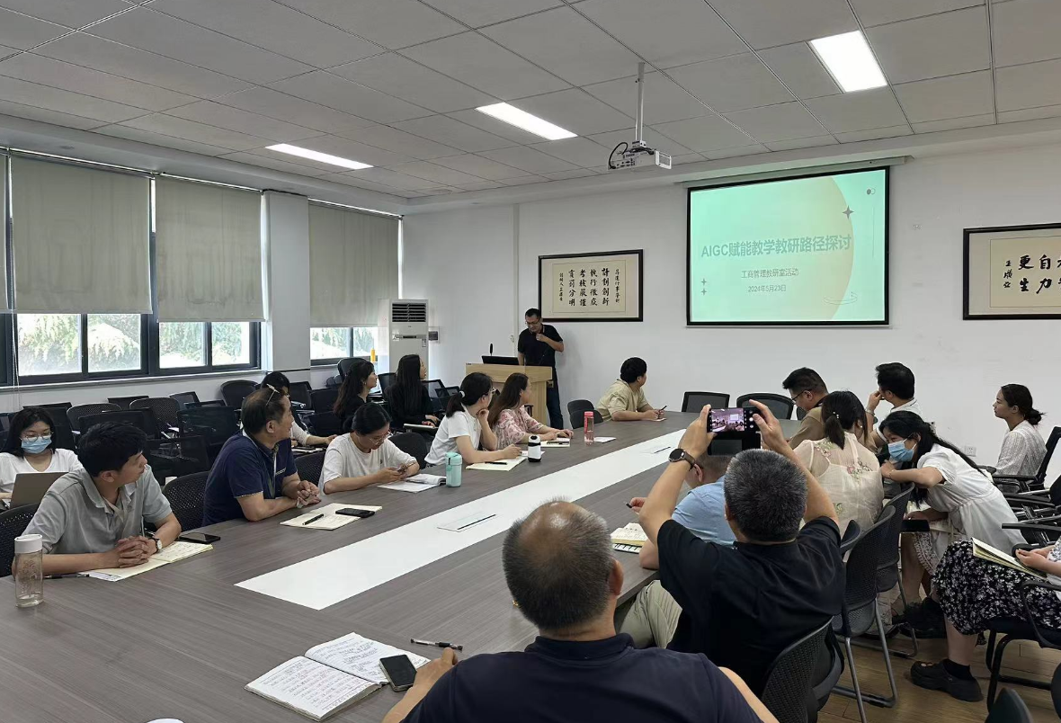 5月23日下午,工商管理教研室在2号楼209教室举行了以“AIGC赋能教学教研路径探讨”为主题的教研活动。全体工商管理教研室的教师出席了这次活动会议,田丰老师作会议专题报告。