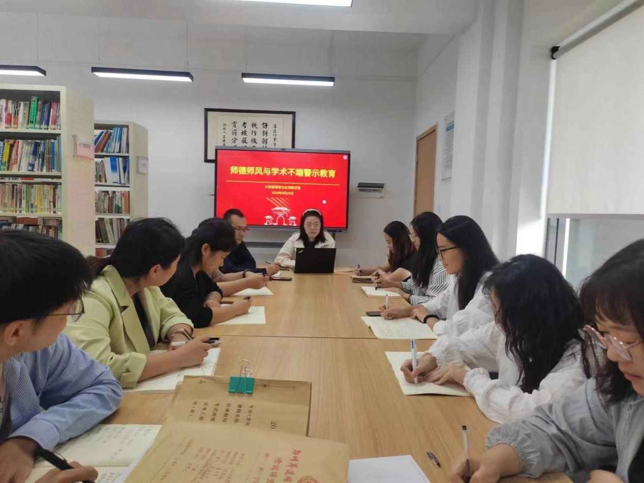 作为高校教师,师德师风是引领我们前行的灯塔,而学术诚信则是构筑学术高楼的基石。大数据管理与应用教研室于2024年9月29日,在2-205会议室召开师德师风与学术不端警示教育专题活动,旨在强化教师们对师德师风的理解与践行,同时深刻认识并警惕学术不端的危害。