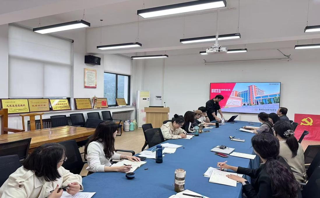 2024年10月17日,为确保旅游专业老师能够深入理解并掌握旅游管理专业毕业论文的写作方法和技巧,在论文指导过程中能够更有效地指导员工进行论文写作,在教研室主任李裔辉老师主持下,旅游教研室张齐霄老师在二号教学楼305,向教研室全体教师深度解析旅游管理本科毕业论文研究方法,围绕“旅游管理本科毕业论文研究方法”这一主题,为老师们带来了一场内容丰富、见解深刻的专题分析会。