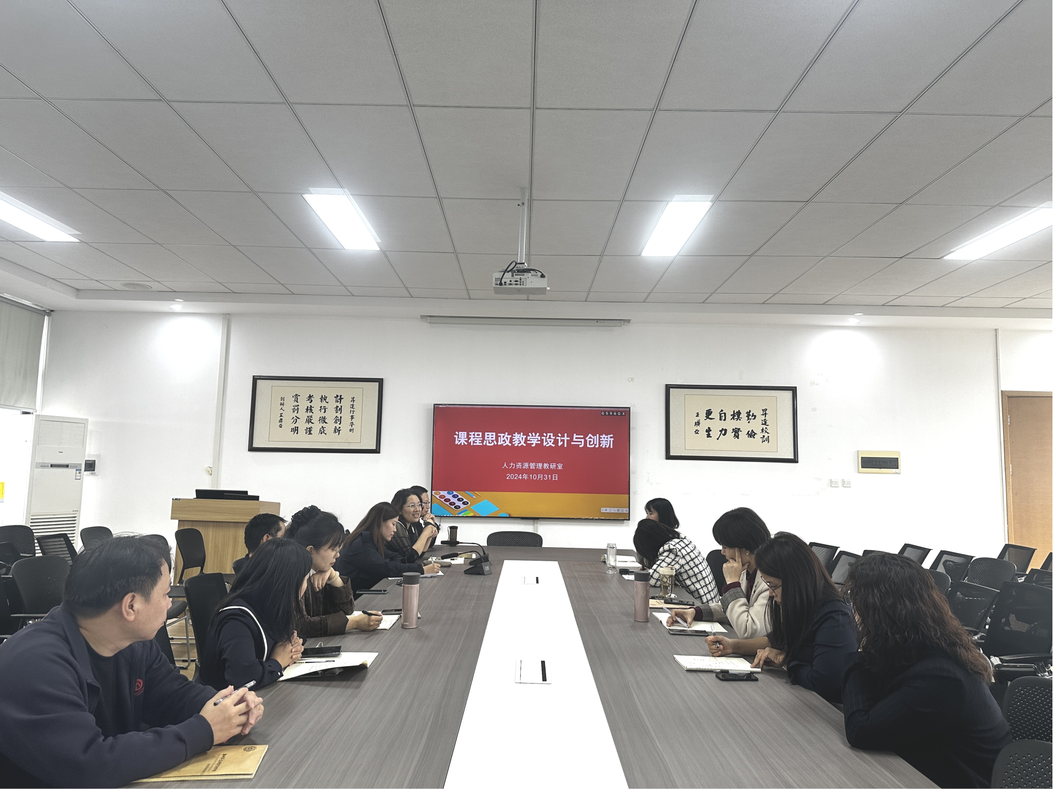 2024年10月31日下午,人力资源管理教研室全体教师在教学2号楼209室成功举办了一场以“匠心筑魂,润物无声”为主题的教研活动。本次活动由教研室主任靳豆豆主持,旨在深化课程思政教学设计与创新实践,以期进一步提升教学质量,为社会培养更多具备社会责任感的高素质人才。