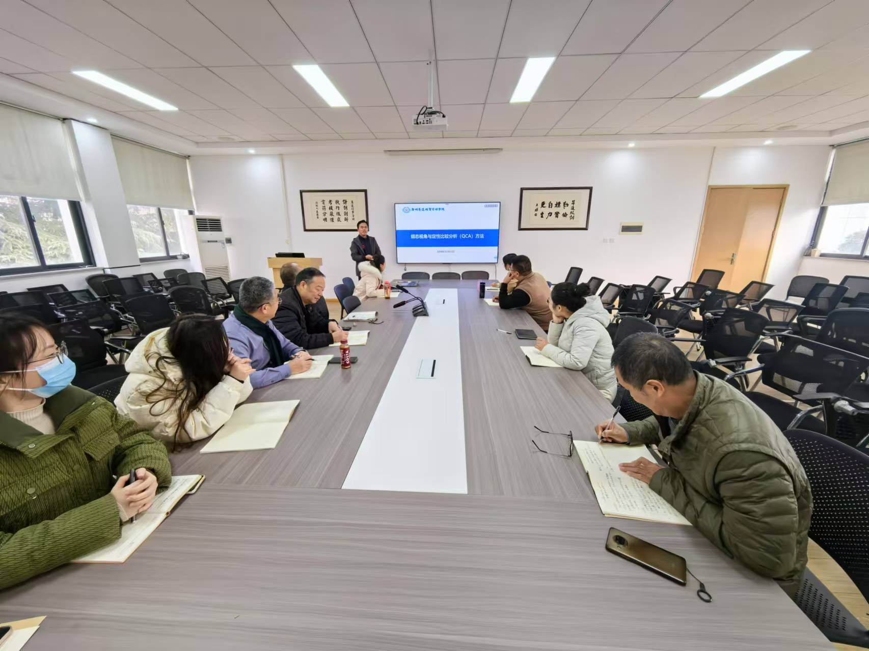 活动中,王小锋老师结合学科研究前沿,详细介绍了组态视角的核心内涵,强调其从整体出发探究多因素相互关联对结果影响的特性,打破了传统研究孤立看待因素的局限。随后,对定性比较分析方法(QCA)进行了深入解读,通过文献阅读的方式展示了如何运用QC 基于布尔代数等手段系统地梳理不同因素组合所产生的复杂因果关系。