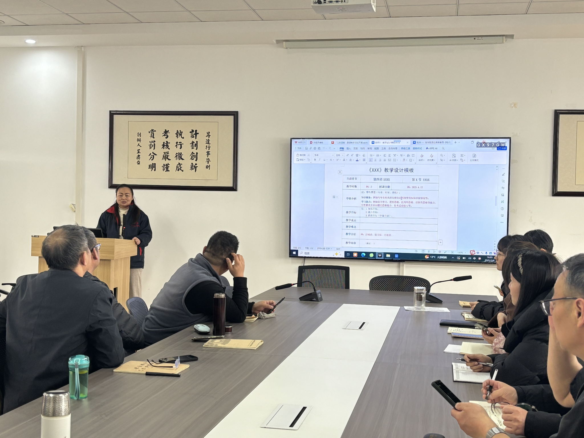 接着,董芳芳老师以教学设计为依托,围绕“三阶思维”的具体内涵,阐述了教学设计的基本逻辑,与会老师共同探讨了专业课程的磨课形式,对教研室的具体磨课安排相关细节进行了讨论,最终确定以课程组为单位组成磨课小组,有磨课组组长带领小组教师开展集中磨课,组内进行教学设计和课堂实景演练互评,切实将教研成果转化为教学实效。