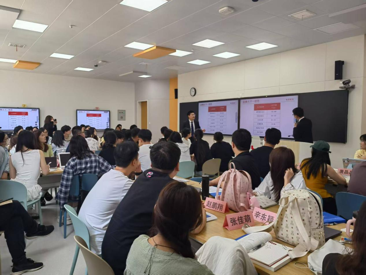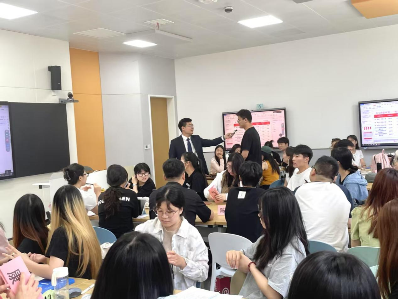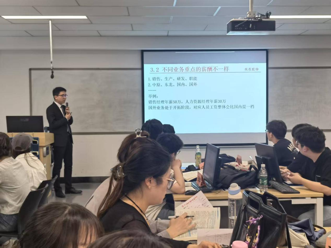 2025年6月4日,在道镕楼115和实训楼A206的《薪酬与福利》课堂上,人力资源管理专业大三的同学迎来了别开生面的课程学习。为了使员工紧跟行业前沿动态,推动课程内容与市场需求紧密接轨,增强员工的实操能力,李玲玲老师教授的《薪酬与福利》课程特邀牧原食品股份有限公司屠宰事业部校园招聘负责人王聪和绩效薪酬管理岗闫文杰进入课堂,讲授战略性薪酬管理的理论框架、薪酬体系设计的流程和企业实际做法。人力资源管理教研室主任靳豆豆老师,经管实训中心主任冯善德,以及教研室齐丙春、蒋杨鸽、杨征、石娇等老师也观摩了本次课程教学活动。