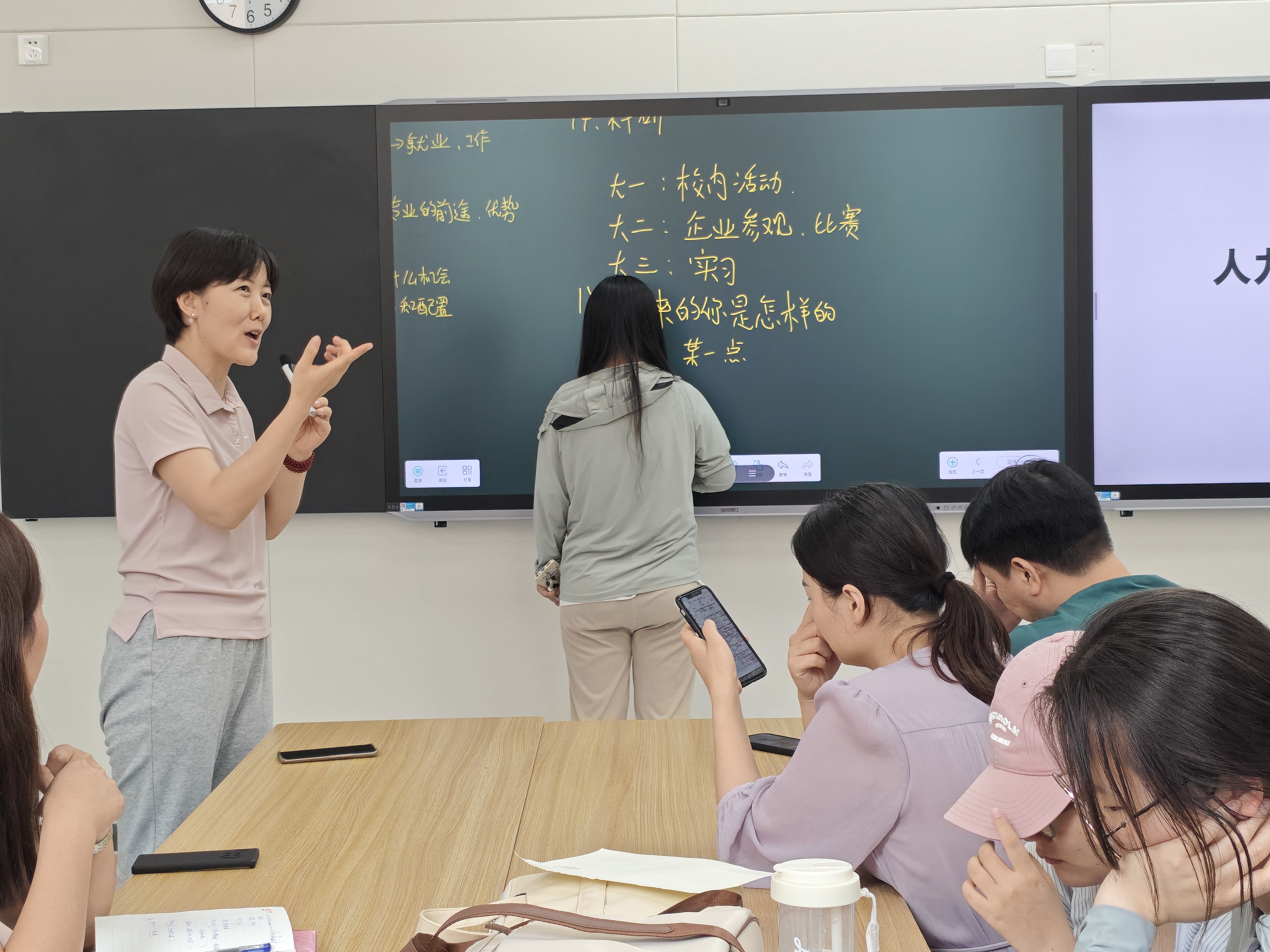 针对提升就业率,师生共同梳理出三大行动方向:一是强化“企业资源库”建设,由教师带队走访标杆企业,挖掘校招岗位;二是建立“员工内推”机制,通过员工群收集企业招聘需求并定向推送;三是加强就业指导针对性,针对意向考公、考研、进企业的员工分类开展政策解读与技能培训。2023级员工张娅茹提出“邀请优秀员工回校分享‘从员工到职场人’的转型经验”等活动,齐丙春老师回应将在10月“就业季”启动“员工面对面”等系列活动。