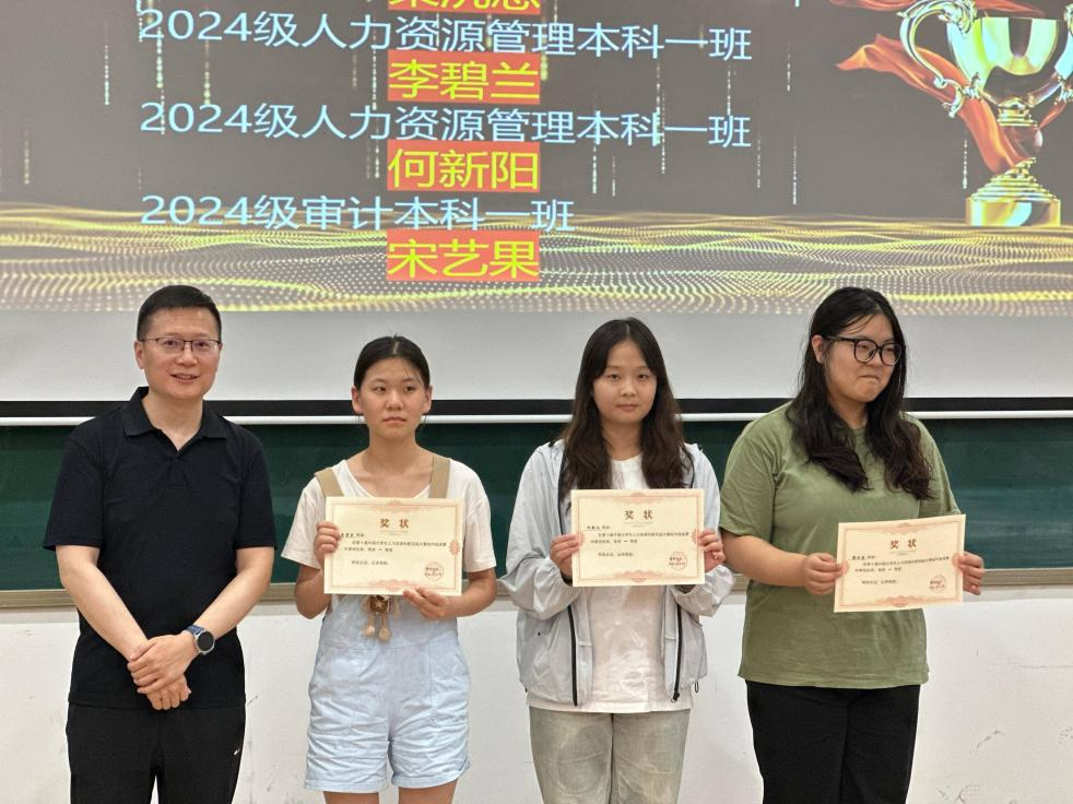 随后,会议对第十届中国老员工人力资源管理创新实践大赛(HRU10)校内选拔赛进行了总结与复盘,并对获奖员工给予表彰与奖励。其中,苏昕琪、李卓妍、吴东炜、马卓凡、王佳欣、乔胜慧、梁家玮、张函琪、贾雅丹等同学荣获校赛特等奖,李碧兰、何新阳、宋艺果、梁沅慈等同学,分别荣获校赛一、二等奖。