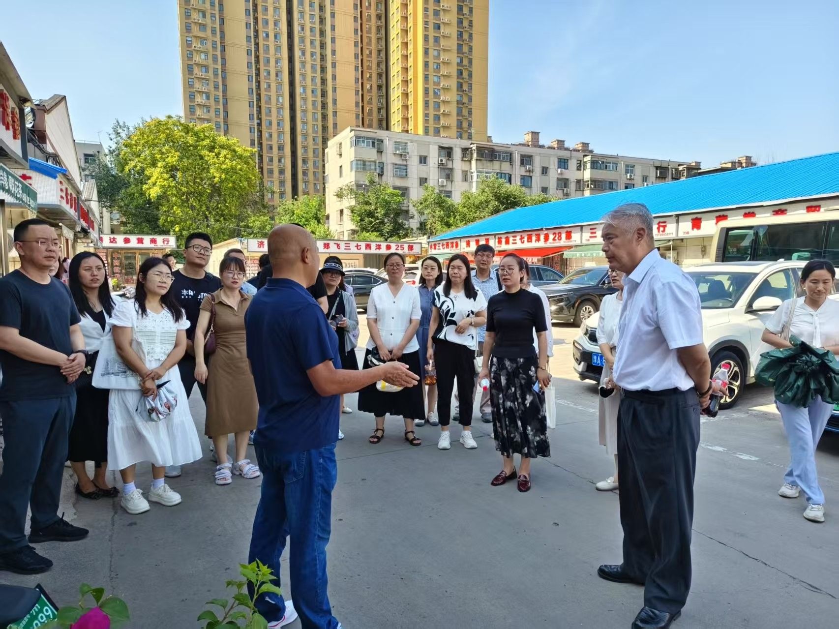 在管城区中药市场,团队追溯“药王庙中医药集市”的辉煌过往。梁淑芬老师提出“以药为媒、以文铸魂”的融合策略,构建“中医药主题文旅综合体”。为开发“药材溯源研学游”“药膳养生之旅”等产品奠定基础。