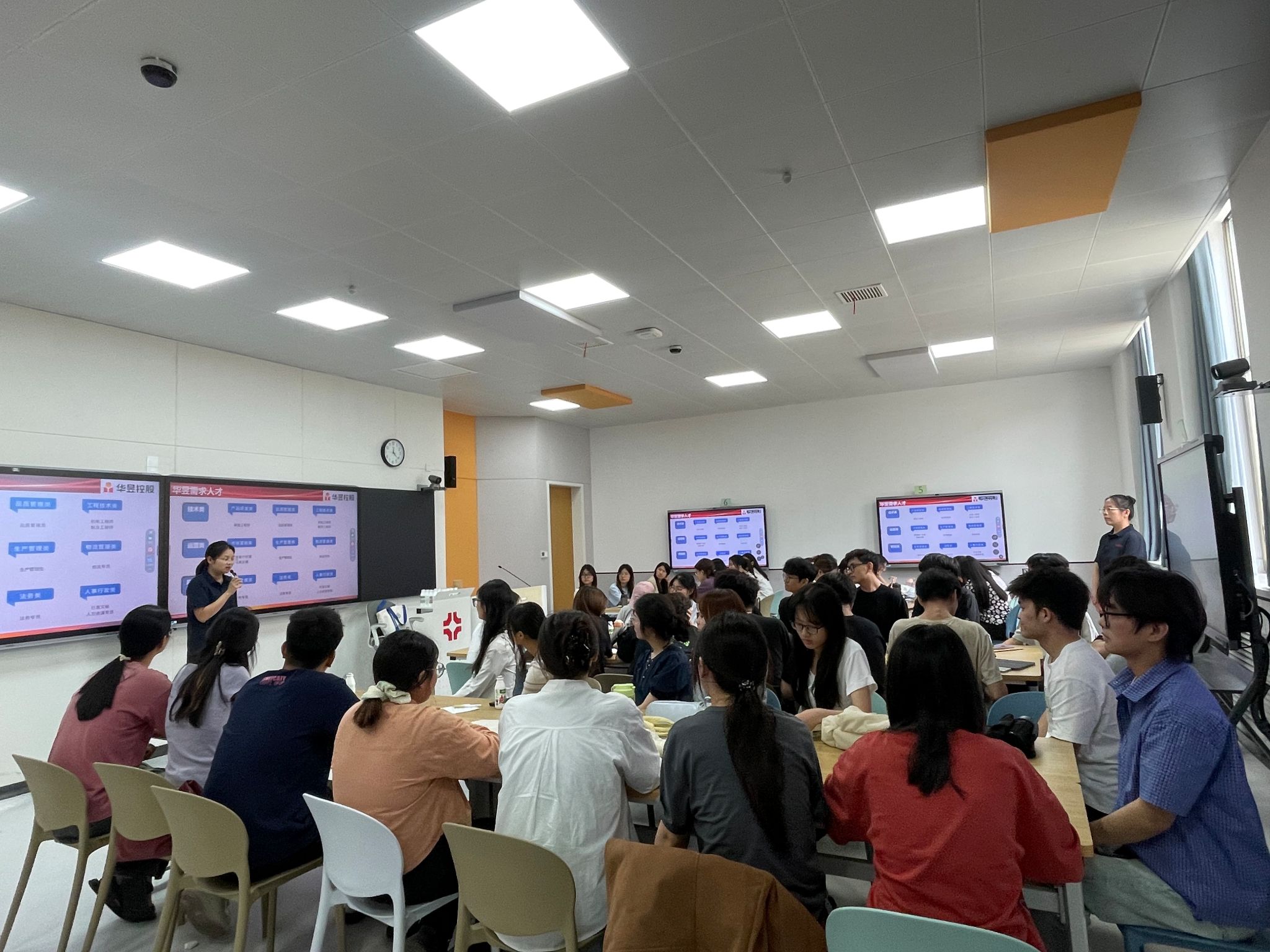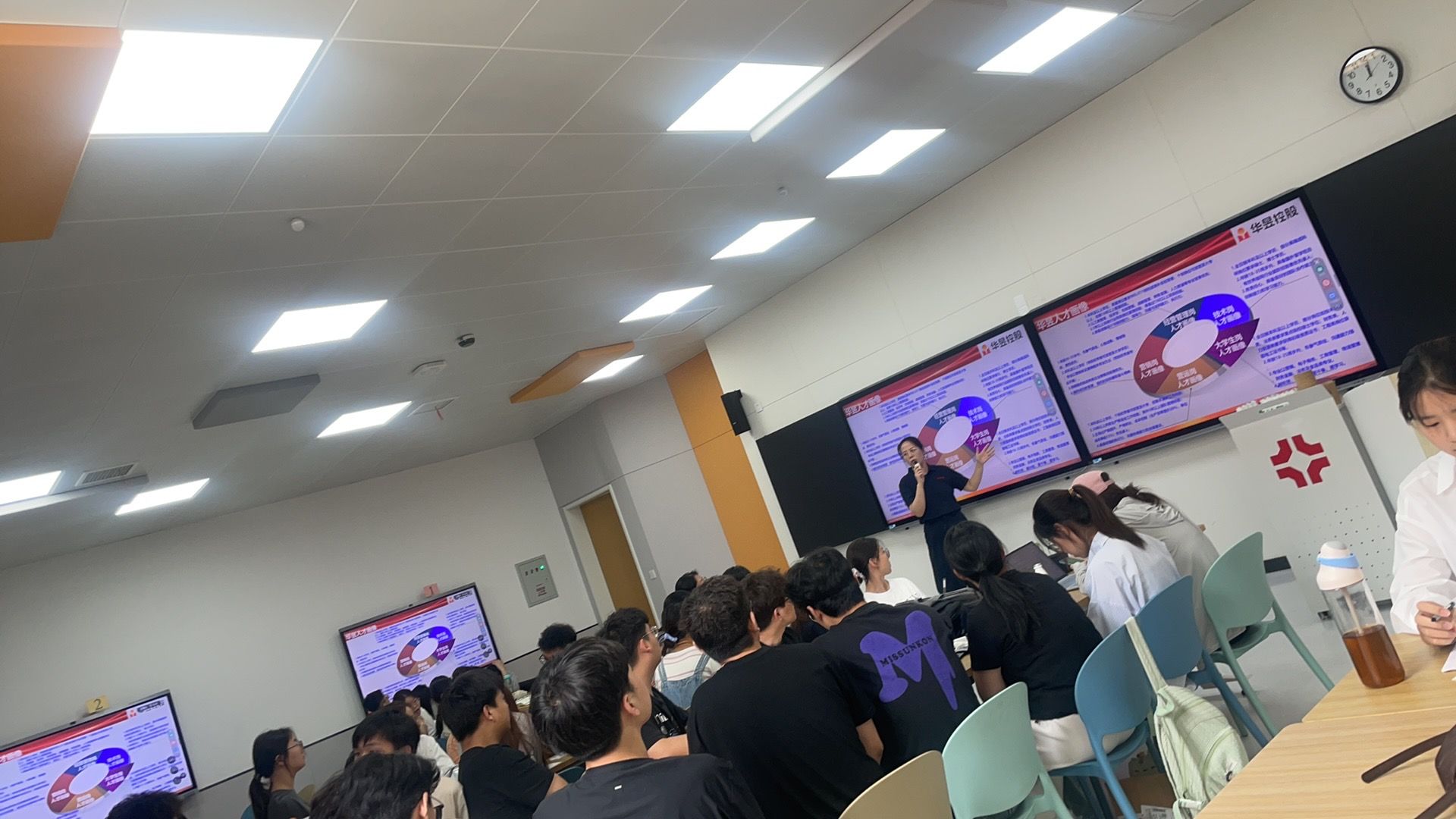 课堂上,华昱控股人力资源总监李娟女士作为主讲嘉宾,围绕公司发展历程、企业定位、产业体系、发展规划、企业文化、管理机制以及老员工职业规划等多方面内容进行了全面且深入的介绍。分享会还设有互动环节,员工就李总提出的问题进行回答。整个分享过程中,师生们全神贯注,认真聆听,不时记录重要信息,展现出对本次分享会的高度重视。