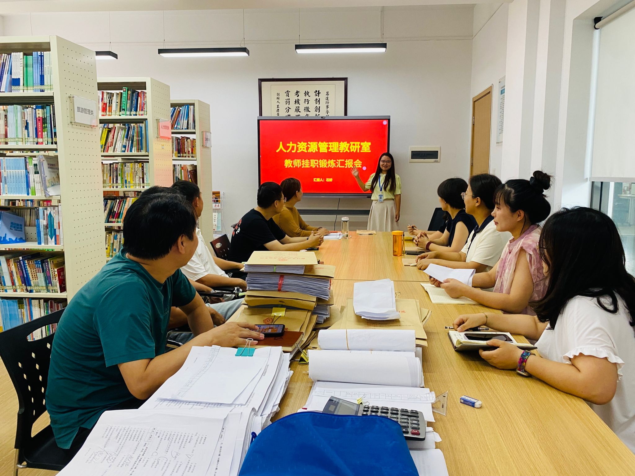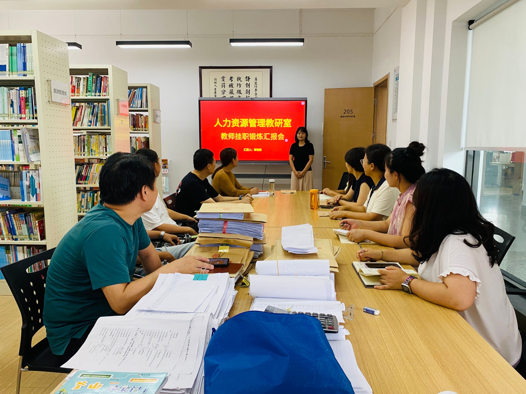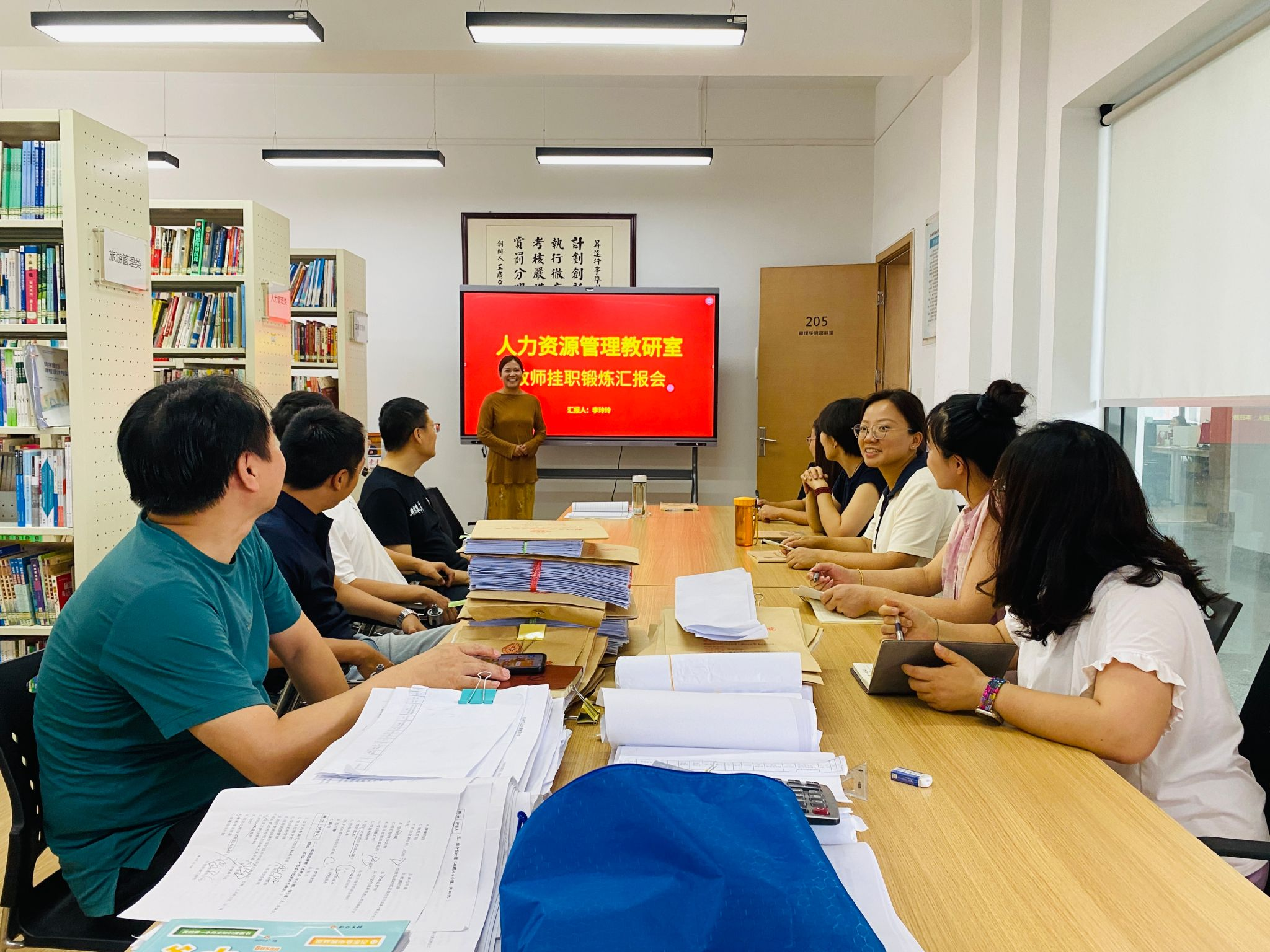 为提升教师的专业实践能力,实现理论与实践的深度融合,打造双师型教师队伍,深度了解企业对人才的实际需求,为高校人才培养方案的优化提供依据,2024年7月以来,人力资源管理专业李玲玲、蒋杨鸽在郑州合智创赢管理咨询公司进行挂职锻炼,石娇教师在河南新天基管业科技有限公司进行挂职锻炼,人力资源管理教研室于2025年8月27日在教学2号楼组织了挂职锻炼汇报会。