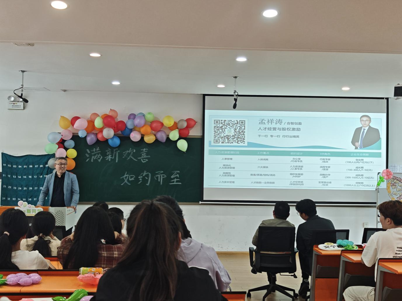 在“我的顶峰・HR大佬说”环节,企业专家从行业实践视角出发,用真实案例与前沿洞察,为新生深度解读人力资源管理的专业价值与职业发展路径,让新生对“人力人”的未来职业图景有了更清晰、更具体的认知。合智创盈咨询公司创始人孟祥涛结合企业用人实际需求,着重强调了“语气、底气、自信”三大职业素养,指出人力资源管理本质是“投资学”,大学期间应掌握专业概念与理论模型,形成“能讲、能说、能写、能跑”的核心竞争力。向上攀登的道路或许漫长,但顶尖人力资源管理岗位的薪酬回报与职业发展空间值得期待。他还提醒新生重视专业价值与个人价值,选择大平台谋求长远发展。