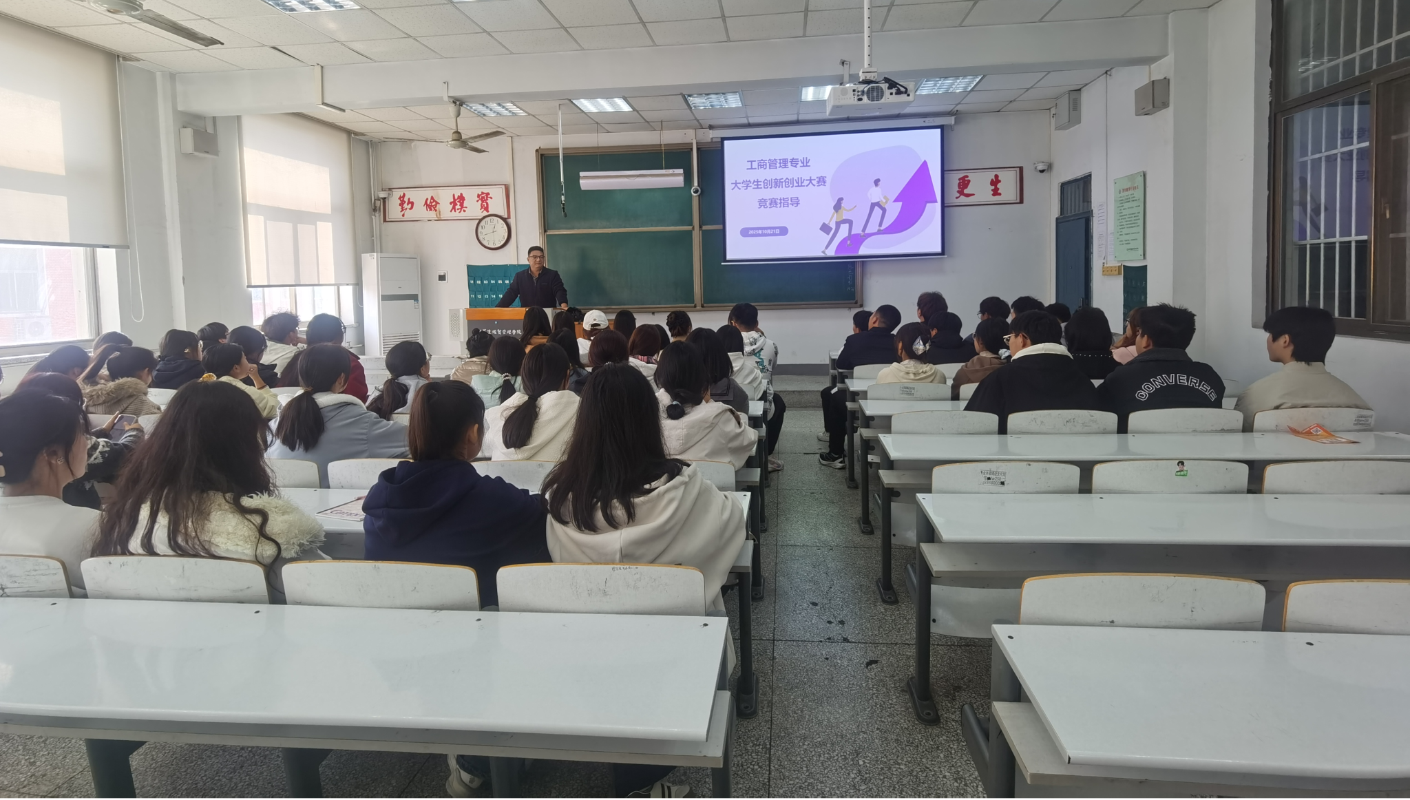 王老师首先从“为什么要参加学科竞赛”这一根本问题出发,强调了参与创新创业大赛对工商管理专业员工的重要意义。他指出,学科竞赛是衔接理论知识与实践应用的重要桥梁,能够系统化培养员工的创新思维、实践能力与团队协作精神。在高级别专业竞赛介绍环节,王老师详细列举了中国国际老员工创新大赛、