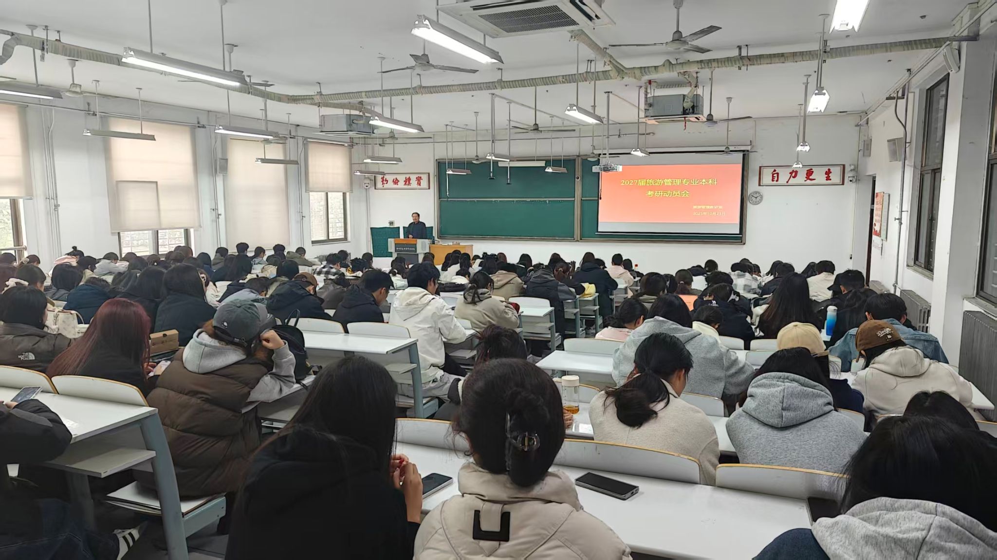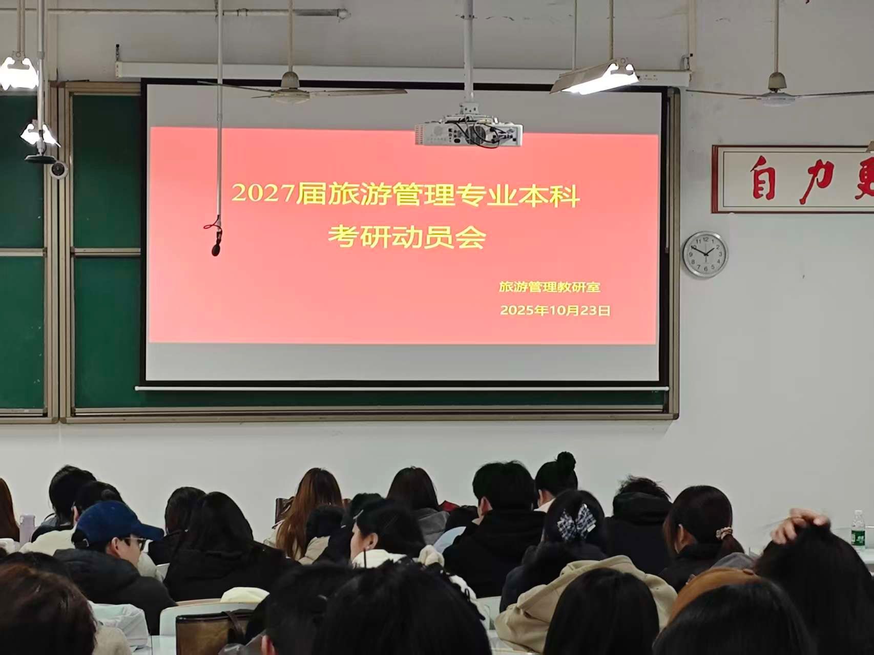 为帮助2027届旅游管理专业本科员工明晰考研方向,科学规划备考路径,激发升学深造热情,旅游管理教研室于2025年10月23日下午在时金楼-108教室组织召开了面向2027届员工的考研动员大会。本次动员会由孙海娜老师主持,并邀请赵文亮教授担任主讲嘉宾。