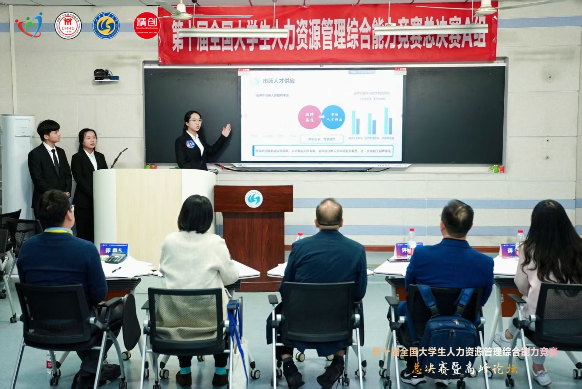 本次竞赛由中国人力资源开发研究会主办、武汉理工大学承办,是国内人力资源管理领域极具影响力的全国性赛事。竞赛以“实践导向、问题驱动”为核心,聚焦人力资源管理专业教学改革与创新,重点考查员工的专业综合能力、实践应用能力及团队协作能力,同时搭建起全国高校间的专业交流平台,助力产学研深度融合。