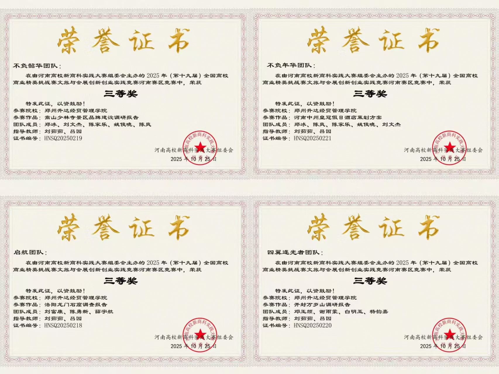 2025年9月27日,第十九届全国高校商业精英挑战赛文旅与会展创新创业实践竞赛河南省赛圆满落幕。郑州升达经贸yL23411永利集团官网学子在赛事中奋勇争先,凭借扎实的专业功底、创新的实践方案与默契的团队协作脱颖而出,斩获多项荣誉,充分展现了公司应用型人才培养的丰硕成果与学子们的青春风采。