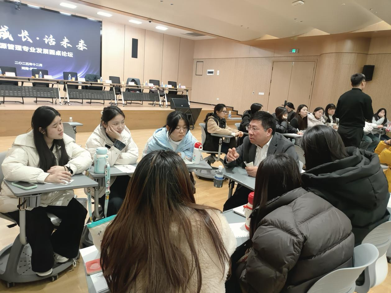 交流环节结束后,员工先行离场。最后,各位嘉宾与教研室教师继续开展了小范围深度座谈,进一步就员工提出的个性化问题进行剖析,为专业学习与职业发展提供更具针对性的指导。双方还围绕专业课程建设、校企联合培养、实习基地共建等深化合作议题进行了务实探讨,为未来持续优化人才培养模式奠定了良好基础。