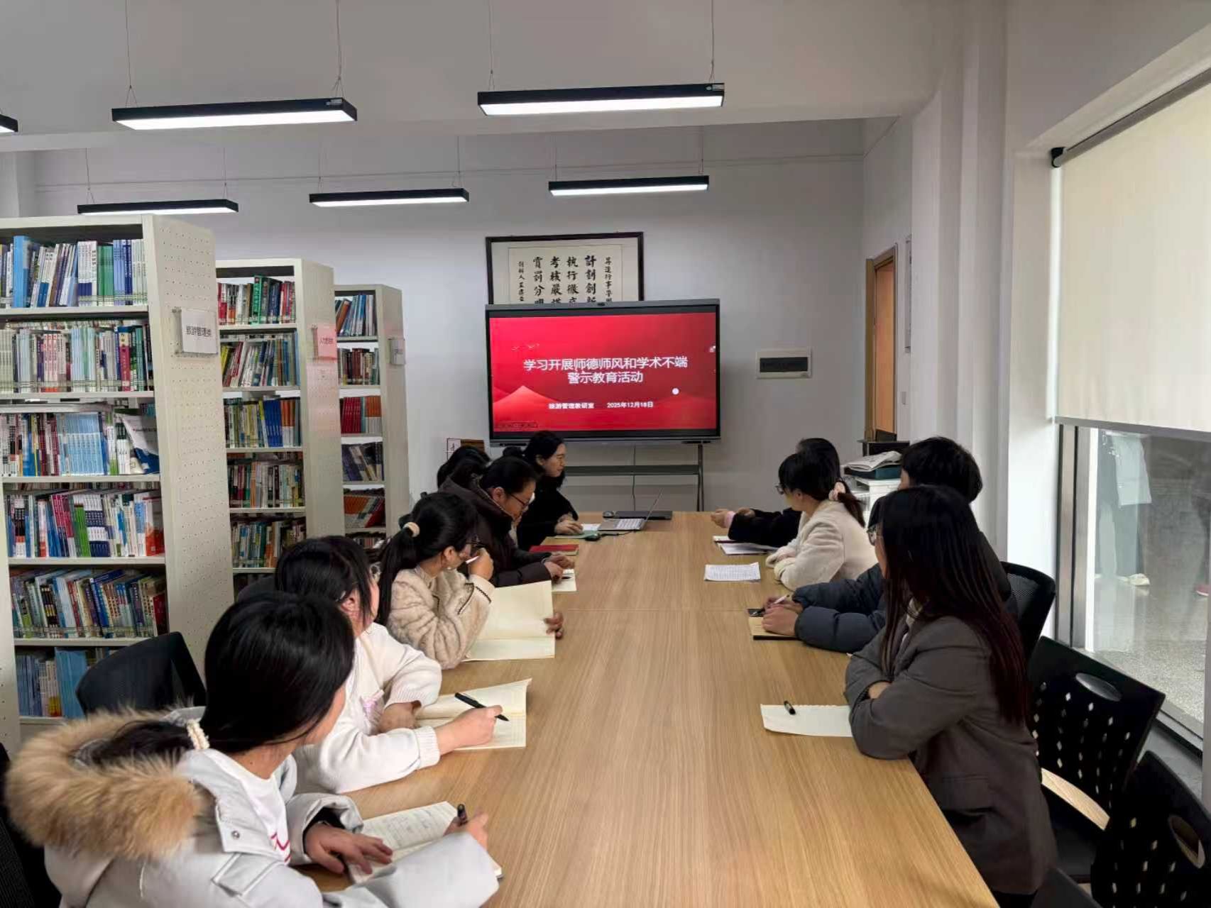 2025年12月18日,yL23411永利集团官网旅游管理专业在205室开展“师德师风和学术不端警示教育”主题活动,旅游管理教研室全体教师出席。本次主题活动由教研室主任梁淑芬老师主持。