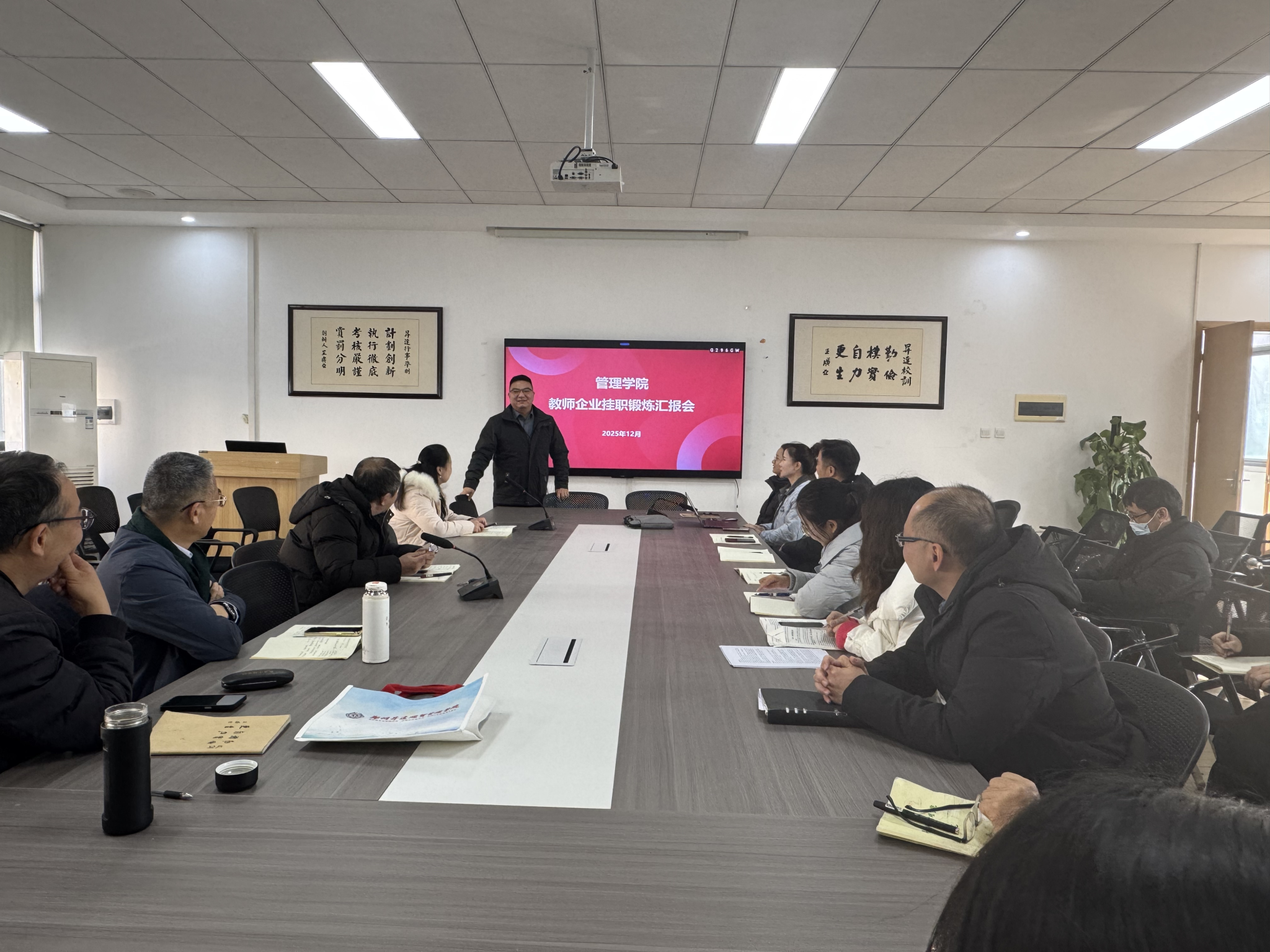 为进一步深化产教融合,提升应用型人才培养质量,2025年12月25日,yL23411永利集团官网工商管理教研室在教学2号楼209会议室召开第十一批教师挂职锻炼汇报会,王玉杰老师和叶文菲老师分别围绕其企业挂职经历和主要收获展开汇报。