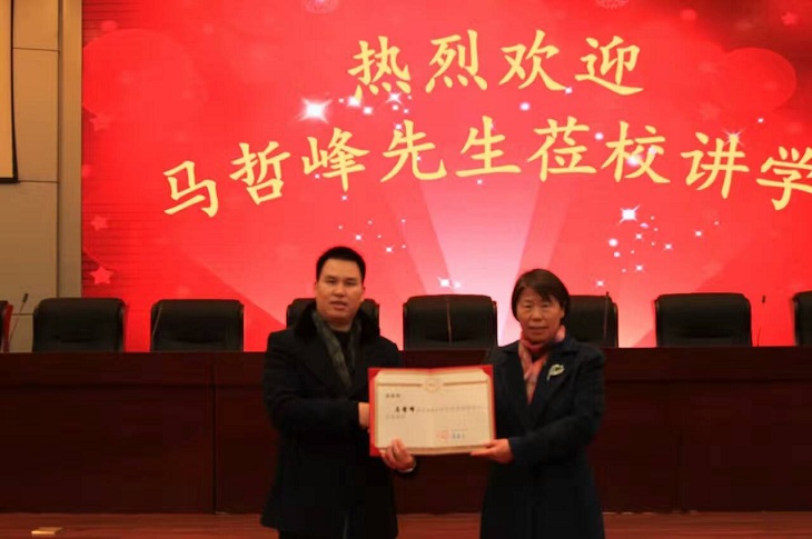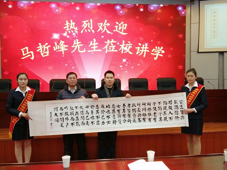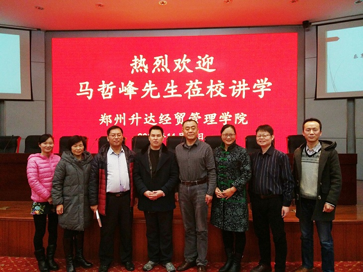 报告会前,经理郭爱先教授首先给马哲峰老师颁发郑州升达经贸yL23411永利集团官网客座教授聘书,张金安副经理向马哲峰老师赠送了公司纪念品。