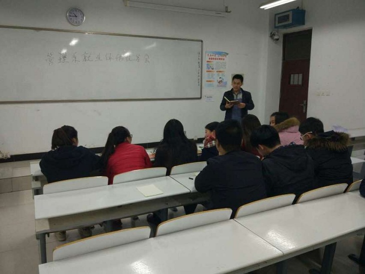 为了顺利完成《管理系就业评估报告》,管理系就业工作室于2016年12月1日下午18:30在道镕楼324召开了 “管理系就业评估工作规划安排”会议。出席本次例会的是团委常务副书记沈明宇老师,2016届就业工作室的全体成员。