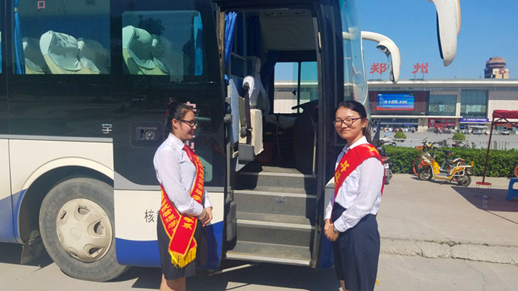早晨6:10全体迎新人员在思源会馆大门集合,跟随校车前往火车站进行迎新工作。每辆校车有一名迎新大使,负责维持车上的秩序、升达情况的讲解以及新生疑问解答。迎新大使以通俗易懂、诙谐幽默的语言让新生和家长在轻松的氛围中对公司的基本概况有了一定的了解。迎新大使热情的服务态度和有问必答的工作作风赢得了家长和员工们的一致好评!