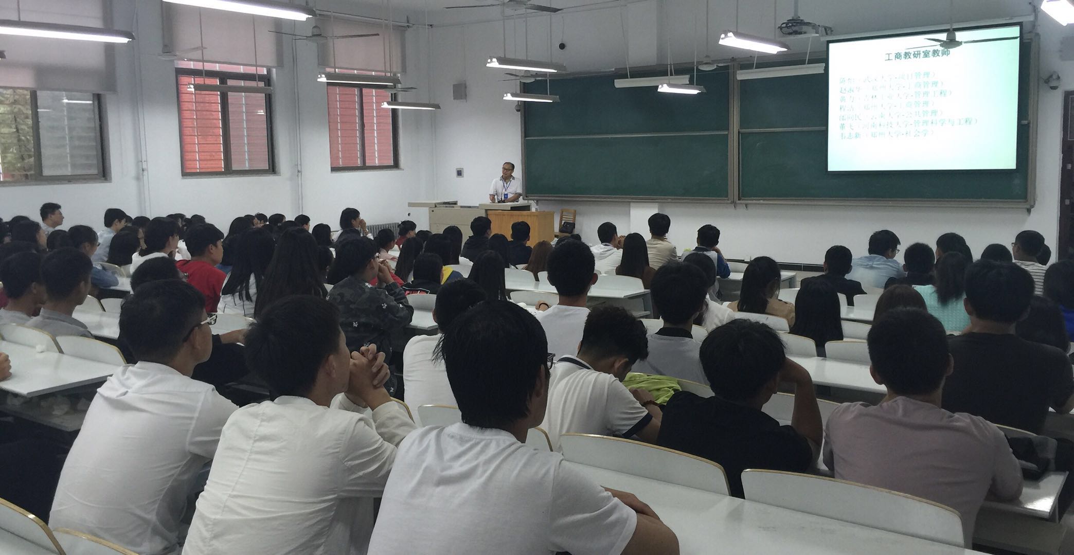 紧接着,张老师又对工商管理专业的整个培养方案进行了详细解说,使新生对将要学习的课程内容有了初步了解。针对工商管理专业员工的就业方向,张老师从什么是管理、管理的实质两个角度入手,结合马云、任正非等优秀企业家的成功案例,为大家介绍了学习工商管理专业广阔的就业前景。