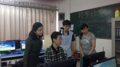 在河南工程公司,公共管理实验教学中心主任陈俊豪老师陪同纪主任一行参观了速录实验室,并详细观摩了人力资源管理教学系统和电子政务教学系统。陈主任热情积极,向参观老师详细的讲解了实验室的日常使用,并提供了实验室日常管理相关材料。