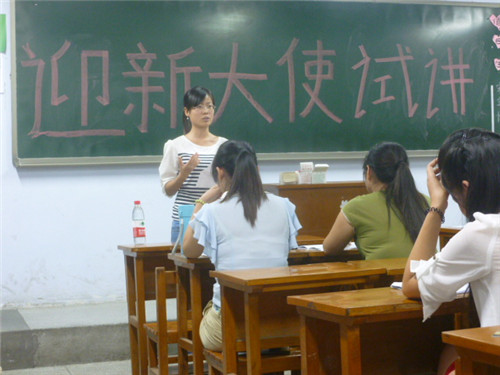 值新生开学报到之际,为服务新生,打造升达良好形象。企管系承办了迎新大使的招募、培训活动。9月2日晚6:40在2号楼211、212教室进行了本届迎新大使的试讲。上届优秀大使和团学会部分成员担任评委,对本届迎新大使试讲进行点评和指导。