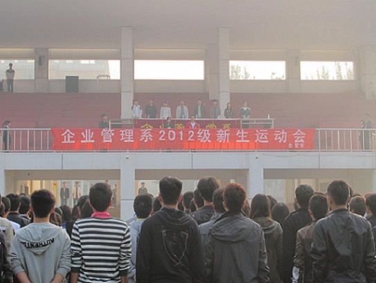 2012年10月20日,由企管系团学会体育部主办、其他部门联合承办的企管新生运动会在体育场上顺利进行。参加此次开幕式的嘉宾有:团委书记职正路老师、新生辅导员及主席团成员。开幕式由职老师致开幕词并发表了重要讲话。