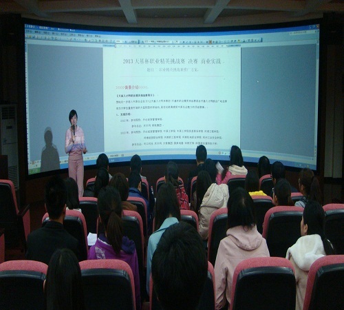 挑战职场精英,成就职业梦想。天基人才网“天基杯”职场精英挑战赛“商业实战”培训于2013年4月22日晚18:00在资讯楼3D仿真实训中心隆重举行。本次培训活动由天基人才网产品总监黄昭为参赛选手讲解。