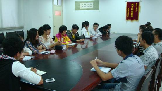 会议在大家的自我介绍中拉开帷幕,回顾这一假期,大家的生活可谓丰富多彩。09级同学们围绕“当代老员工心理问题及其解决措施”展开实践,并开始了他们的创业计划。10级的同学通过在北京一家度假村的实习,了解了一些相关知识,并提高了人际沟通能力。11级的同学有幸在公司人事部实习,初步接触了企业人力资源操作系统,对自己的专业有了更进一步的了解。同学们在不同的岗位上初步解除了社会,同时也深刻认识到了自己的不足。