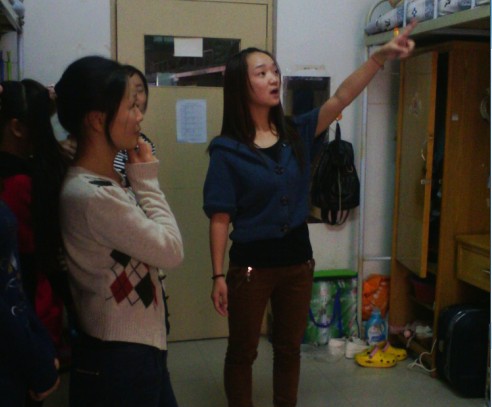 首先,许广庆老师,高世伟老师让男女生互相参观宿舍,并强调同学们要取长补短,共同进步。之后,针对出现的问题请宿管石红艳老师给予指导,强调同学们要从身边小事做起,养成良好的生活习惯,认真做好内务。最后,许老师,高老师就近期发生在河南职业公司的安全事件给予警示,望大家从中吸取教训,平时养成良好的上网习惯,与网友相交要谨慎等,重点强调女同学一定要加强自我保护意识,安全意识,要遵守公司的规章制度,尤其是晚上要按时归宿,并关好明窗。以确保宿舍内部安全。