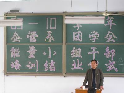 4月22日下午四时,企管系2010年团学会能量小组干部培训班结业典礼在教学2号楼208教室隆重举行。系团委书记、行政秘书职正路老师、系团学会主席团及全体培训班成员参加了结业典礼。